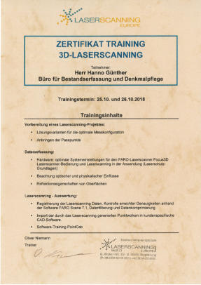 Zum Zweck der maßlichen Bestandserfassung, Beweissicherung, Visualisierung, als detaillierte Abbildung von restauratorisch zu behandelnden Oberflächen und Objekten, oder zu Archivierungszwecken, bieten wir Ihnen das 3D-Laserscanverfahren an. Überall dort wo der Einsatz von Tachymetervermessung, Ortophoto oder Photogrammetrie an seine Grenzen stößt setzen wir auf den 3D Laserscan. Dabei sollte im Vorfeld genau definiert werden zu welchem Zweck der Scan erstellt und wie dieser weiter vearbeitet werden soll.